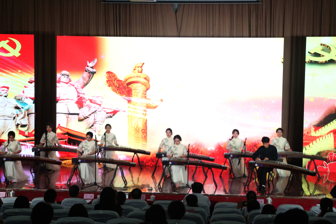 大会最后,蚌埠学院学子也用他们精心准备的节目为老师庆祝节日。古筝演奏《党的光辉照我心》、男生二重唱《百年》,用优美的旋律表达了炙热的爱党爱国之情。独唱《老师,我想你了》唱出了莘莘学子对恩师的感激,大气磅礴的舞蹈《万疆》勾勒出山河无恙的盛世景象。