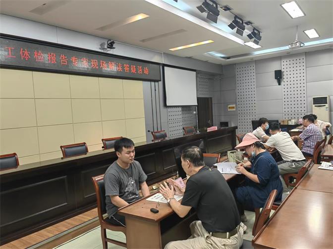 教职工体检报告专家现场解读答疑活动在行政楼视频会议室进行。为便于教职工看懂、读懂个人体检报告,提高对相关疾病知识的预防意识,使体检工作取得成效,校工会邀请了蚌埠市第二人民医院2名医学专家到校现场为教职工体检报告解读答疑。通过这次专家现场解读答疑,让教职工对自身健康状况有了更深刻的了解和认识,提高了教职工在工作和生活中自我保健意识,树立了正确的保健心态,真正把我为群众办实事落到实处,使广大教职工获得“幸福感”,以更好的精神状态投入到工作中去。