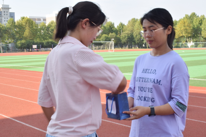 为庆国庆、迎重阳,10月2日外国语学院团总支学生会在北操场开展了“喜迎国庆,爱满重阳”活动。