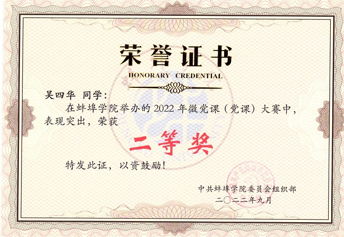 日前,蚌埠学院“喜迎二十大、展现新状态、奋进新征程”微党课(党课)大赛正式揭晓,经过精心准备与激烈角逐,马克思主义学院报送的四个作品分获一二三等奖,分别是:原理党支部吴国莎老师的作品《舍生取义第一人 美丽珠城留忠诚——安徽省为革命牺牲第一人 杨兆成》荣获一等奖,概论党支部王一老师的《革命母亲苏老妈:战刀凝结鱼水情》和基础党支部汪淼老师指导的学生吴四华的《渡江英雄马毛姐 支前模范传佳话》获得二等奖,纲要党支部刘艳玲老师的《用初心赢民心 谱写乡村振兴新篇章——记蚌埠学院驻村第一书记余建杰》获得三等奖。