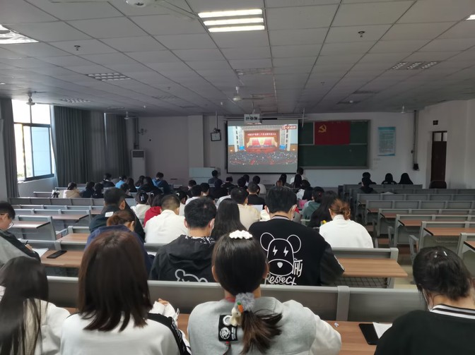 2022年10月16日上午,食品与生物工程学院师生通过网络、广播等多种形式,收看、收听了党的二十大开幕盛况。教师党员、学生党员和团总支学生干部分别在院会议室F1214、教学楼G106、G303和G304集体收看了党的二十大开幕会。
