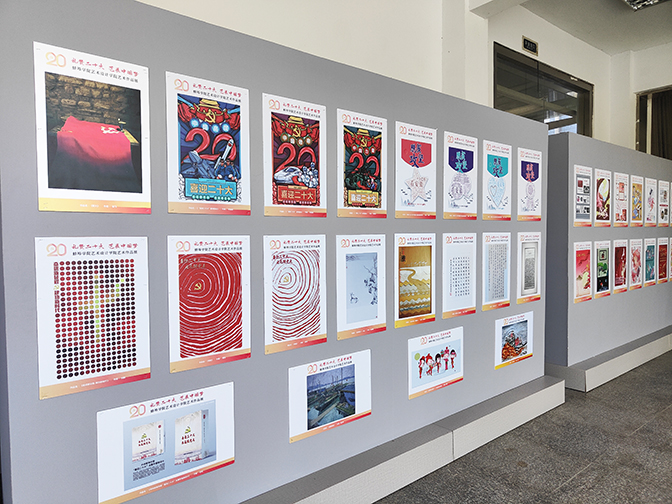 几番历练方成器,数经雕琢自见功。本次展览得到广大师生的积极响应,共征集作品400余幅,因展出空间有限,展出76幅,涵盖美术类、设计类、书法类等作品。作品以“‘艺’心向党”为主线,聚焦中国共产党百年光辉历程和伟大成就,题材广泛,形式多样,内容丰富,各具特色,体现了较高的思想性和艺术性,歌颂了党的光辉历程,抒发了学院师生对党的热爱、对辉煌伟大的中国梦的向往,彰显了广大师生坚定不移跟党走的决心和奋发有为的精神面貌。学校专门邀请了校内外艺术专家担任展览活动评委,从主题选择、构思创意等方面进行认真研讨和综合评定,共评选出一、二、三等奖40项。