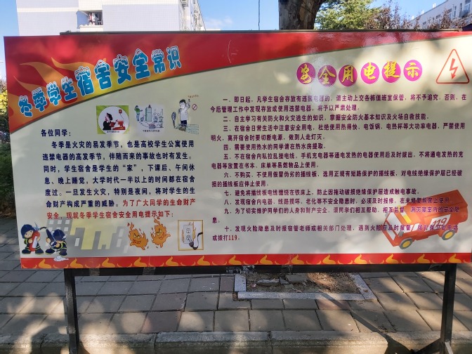 本次活动的第二部分内容是通过展板进行宣传教育。展板中包括违规用电造成后果案例、宿舍安全防火常识、学生公寓“十不准”等。