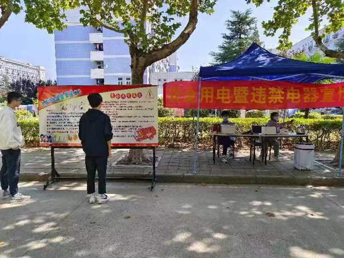 为保障学生公寓用电安全,规范学生日常用电行为,将创建平安校园落到实处,2022年10月14日-15日,后勤管理处开展了“安全用电暨违规电器宣传展”活动。