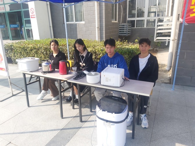 谨慎用电千回少,大意疏忽一回多。宿舍用电安全,一直是校园生活重要的一环。随着社会的发展,宿舍违规电器也是各种花样。本次活动内容之一是宣传违规电器的种类。“呀,这个烘鞋器那么可爱,没想到也是违规电器”。“还以为加湿器瓦数特别低,原来宿舍里也不能用”。“备个小锅下个面条,煮个稀饭可能很方便,但已经给线路带来负担了”。“违规电器展看上去很有趣,有话题性,但更是一种温柔的警醒”……同学们在违规电器宣传展的现场纷纷讨论着。