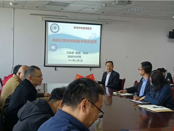 2022年11月1日下午,材料与化学工程学院邀请安徽科技学院汪徐春教授做了题为“高纯石英砂的制备与综合应用”的专题学术讲座,讲座由材料与化学工程学院院长李宗群教授主持,材料与化学工程学院相关教师参加了此次讲座。