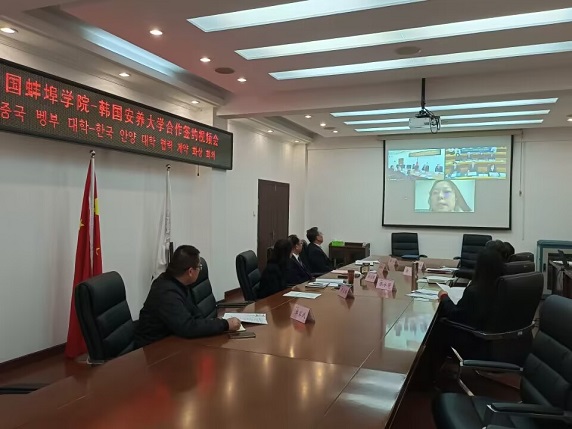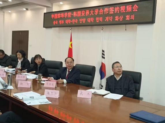 为进一步拓展学校国际交流平台,引进海外优质教育资源,11月9日上午我校与韩国安养大学举行视频会议,签订两校校际合作协议。校党委书记陈国龙,教务处、科研处、经济与管理学院、艺术设计学院、文学与教育学院、音乐与舞蹈学院等部门的负责人参加此次会议。安养大学校长朴鲁俊、副校长张龙哲,研究院、国际交流院、教育学系、经营学系等部门的负责人参加了此次会议。