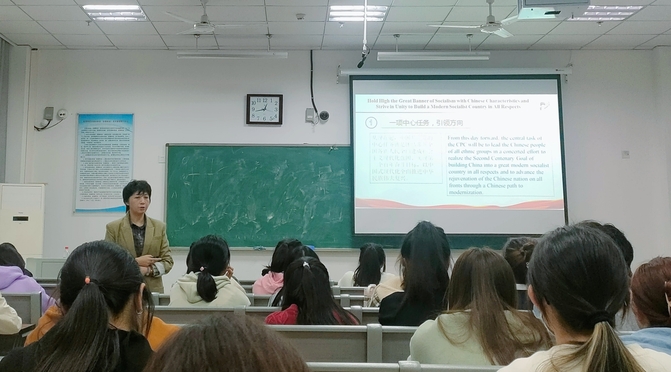 为进一步推进党课教育走深走实,提高思想政治工作的针对性和实效性,外国语学院党委结合英语专业特色,将时政热点与双语党课相结合,于11月9日中午为学院第35期党课暨青马培训班全体学员开展《习近平总书记系列重要讲话精神》主题中英双语党课,课程由学院副院长、大学英语教工支部书记卢洁主讲。