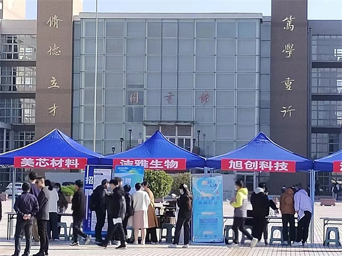 2022年11月16日,“铜揽人才 陵创未来”铜陵地区组团招聘活动在我校图书馆西侧广场举行。