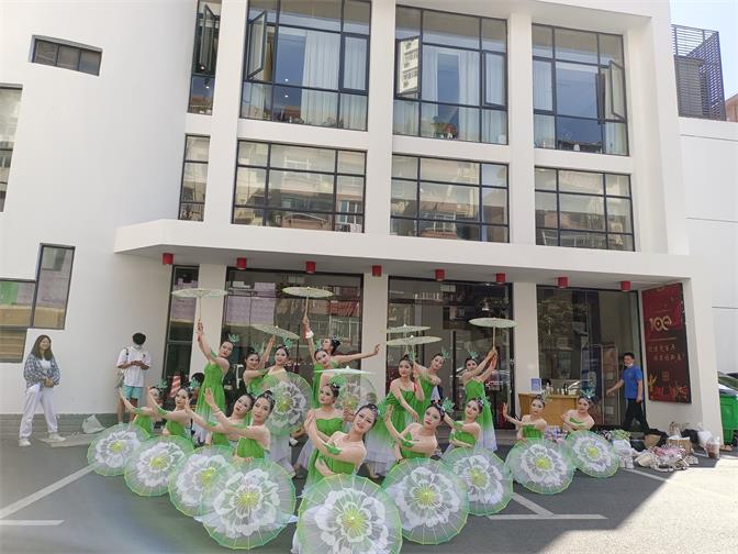 节目中,团队成员们以一袭青绿长裙亮相,手执白纱木伞,为会场增添了一抹亮色。服装设计上选用青绿色作为主色调,以显示祖国的万里山川青翠,大好河山纵横,一派欣欣向荣之意。音乐响起,现场气氛沉静下来,成员们缓缓走上舞台,随音乐律动,舒展身姿,尽显舞蹈之美。生动灵活的表演形式、优美的舞姿、丰富的思想内涵以及耳目一新的舞台效果赢得了在场评委们的一致赞赏。