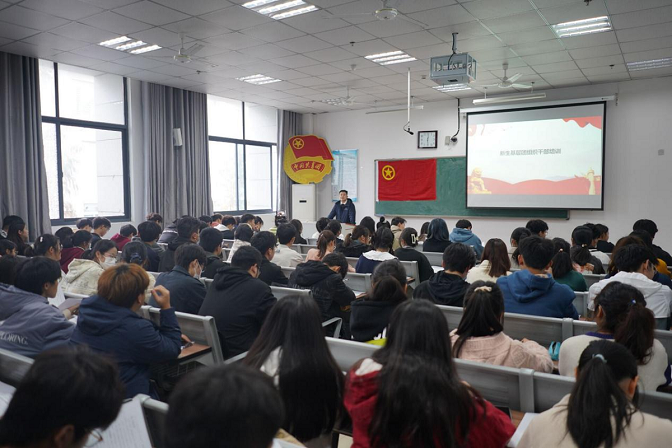 基层团干培训班,打造基层团工作新力量。为深入学习宣传贯彻党的二十大精神,进一步加强基层团组织干部队伍建设,11月21日,蚌埠学院2022年新生基层团干部培训班正式开班。校团委书记哈焱作开班动员,来自二级学院的140余名新生团干部通过集中培训和线上直播的方式参加培训。