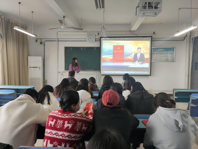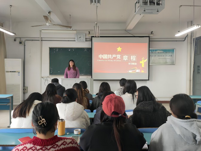 本次党课由党支部书记董琬如主讲,学生第二党支部全体成员参加。董琬如向大家分发了新版《中国共产党章程》,支部成员们认真阅读,深入、全面地学习党章内容。课上,董琬如带领支部成员们重温了党章的修订历程,并对本次党章修订内容进行重点学习,明确在习近平新时代中国特色社会主义思想指导下,中国共产党领导人民实现第一个百年奋斗目标,开启了实现第二个百年奋斗目标的新征程。随后,支部成员进一步学习了创新、协调、绿色、开放、共享的新发展理念,对于党章内容有了新的认识与感悟。最后,董琬如为大家播放了党章修订学习视频,支部成员认真观看,积极学习,对党员权利和义务有了更深刻的理解。
