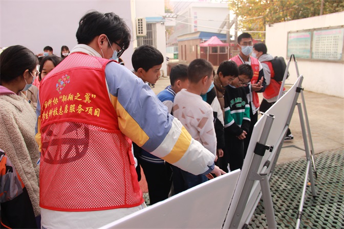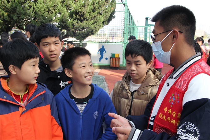 11月25日,在蚌埠市龙湖第二小学的操场上,蚌埠学院“靓淮河”科普宣讲团的成员正在向学生们讲解“靓淮河”工程,科普环保节水知识。“青山绿水是我家,淮河文化靓起来”,知识展牌前,学生们正大声地朗读展牌上的文字,认真地浏览图片,仔细地聆听宣讲团的讲解。