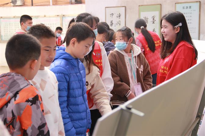 宣讲活动也在教室同步进行,宣讲团成员蒋梦男将科普的趣味性与实践性相结合,通过“站立的牙签”让学生们明白治理淮河的重要性。“在实验的过程中,有一个小朋友可能因为较为生疏,帮助我进行实验时出现一点小失误。这个时候我保持平静,先去安慰、鼓励小朋友,再次将实验过程操作了一遍,最后圆满完成。”蒋梦男笑着说。