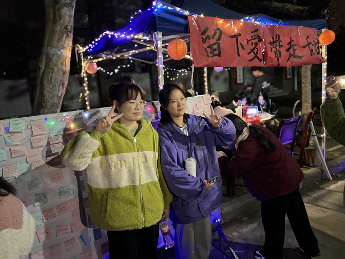 为加强广大学子的感恩意识,帮助学子们懂得“感恩”是一种生活态度,是一种美德,从而创造一个充满爱心的和谐校园,近日,电子与电气工程学院在图书馆东侧主干道开展了“留下爱,带走甜”活动。
