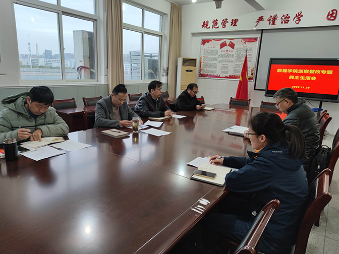 为落实巡察整改任务,切实扛起巡察整改工作责任,根据学校党委第二巡察组《关于巡察数理学院党委的反馈意见》和《蚌埠学院党委巡察数理学院党委反馈意见整改方案》要求,11月29日,数理学院党委召开了巡察整改专题民主生活会。学院党委班子成员参加了会议,会议由党委副书记杨安升主持。