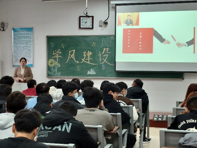 活动伊始,李芹影以“聆听习近平总书记的‘青春寄语’”引出班会主题并致开场辞,她希望同学们牢记习近平总书记的殷殷嘱托,充分利用大学的学习时间,勤勉好学、孜孜以求、不断进取,做对社会、对国家有贡献的人。