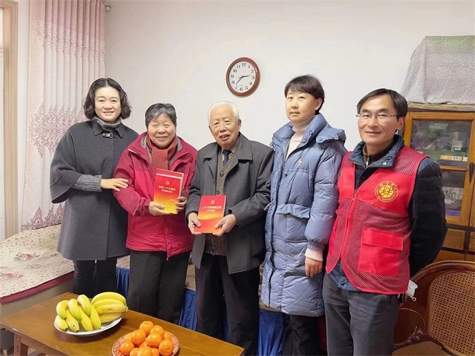 活动中,在蚌埠学院工会主席欧阳红、组织部副部长张敏的带领下,送学上门队伍先后上门慰问了张德林和林传荣两位退休老干部,为他们送去了《党的二十大报告学习辅导百问》、《二十大党章修正案学习问答》等学习资料,并向他们转达学校党委的关心与慰问,鼓励他们积极学习宣传贯彻党的二十大精神,进一步坚定理想信念,永葆政治本色,继续发挥余热,为谱写现代化新篇章贡献智慧力量。
