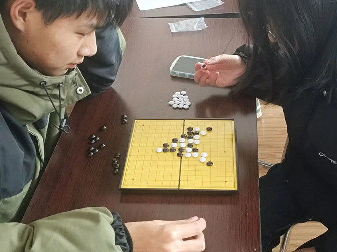 相对而言,室内活动则更加展现出同学们的沉着冷静和博弈智慧。在五子棋比赛中,工作人员向选手们说明了游戏规则,大家跃跃欲试,准备一展身手。各组选手认真应战,比赛格外精彩,一旁的裁判也认真观察战局动向,力求公平公正,对参赛者负责,气氛愈加紧张,各参赛选手均全神贯注,力争胜利,每一步棋都深思熟虑。