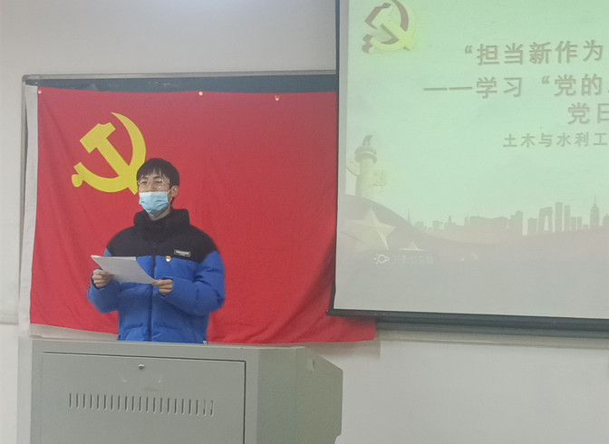 为深入学习领会和全面贯彻习近平新时代中国特色社会主义思想,进一步加强党员党性教育,提高党员的党性修养,强化政治活动仪式感,12月9日,土木与水利工程学院土木工程学生党支部在教学楼B114开展“担当新作为,奋进新征程——学习贯彻党的二十大精神”主题党日活动,土木工程学生党支部书记张饮主持此次活动,支部全体党员参加。