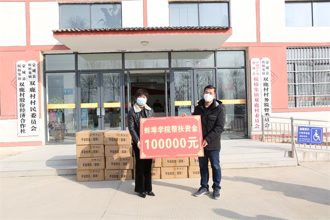 张尔桂代表学校为“蚌埠学院食品科学工程专业实践教育教学基地”所在地板桥集镇双鹿村捐款拾万元。