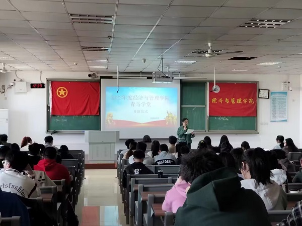 3月7日中午,经济与管理学院于教学楼G楼举行青年马克思主义者培养工程开班仪式,本次仪式由团总支书记张晶主持,经济与管理学院党委副书记夏晓燕应邀出席。