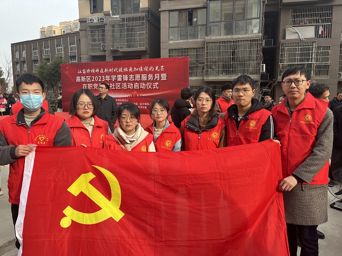 3月3日,高新区“让雷锋精神在新时代绽放更加璀璨的光芒”学雷锋志愿服务月暨在职党员进社区活动启动仪式在东周嘉苑社区举行,电子与电气工程学院电子信息专业学生党支部书记刘斯文带领支部党员前往学习交流并参加志愿服务。