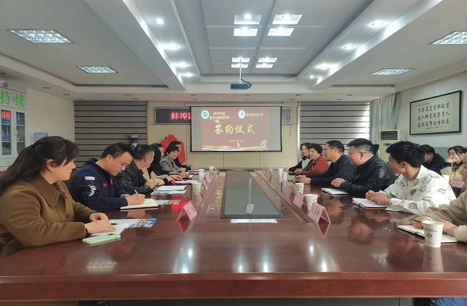 郭有强代表蚌埠学院向长期支持我校大学生就业实习工作的蚌埠第四中学表示衷心的感谢。他提出,举行蚌埠学院就业实习基地签约仪式,是深入贯彻教育部、省教育厅关于高校书记校长“访企拓岗促就业”专项行动的通知要求,促进毕业生更加充分、更高质量就业。也是落实蚌埠市“促合作、促就业、促发展”的要求,有效促进我校毕业生更多的留蚌工作。此次签约仪式,标志着蚌埠学院音乐与舞蹈学院与蚌埠第四中学建立了正式合作关系,希望今后以就业实习基地建设为平台,争取与蚌埠第四中学在教学、科研、人才培养、学生实习就业等方面开展深层次、立体化合作,为蚌埠学院学生成长成才打造更好平台,也为服务经济社会发展作出更大贡献。