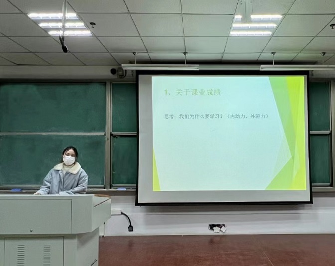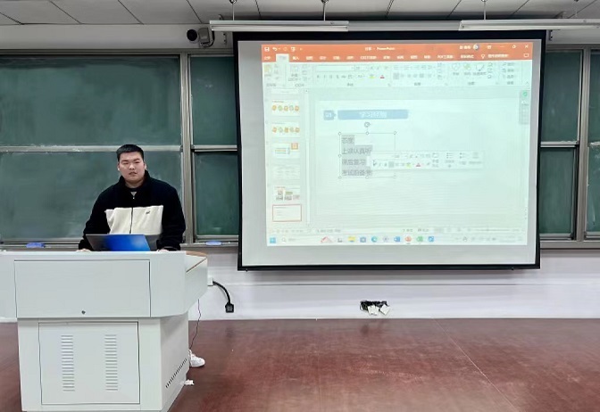 分享会伊始,励志奖学金获得者郑迎玉进行分享,她从自身的比赛经历和学习经历出发,着重从课业、竞赛、学生工作三个方面向学弟学妹们做介绍,建议学弟学妹们要意识到规划的重要性,激励学弟学妹们好好学习、不畏困难、迎难而上。