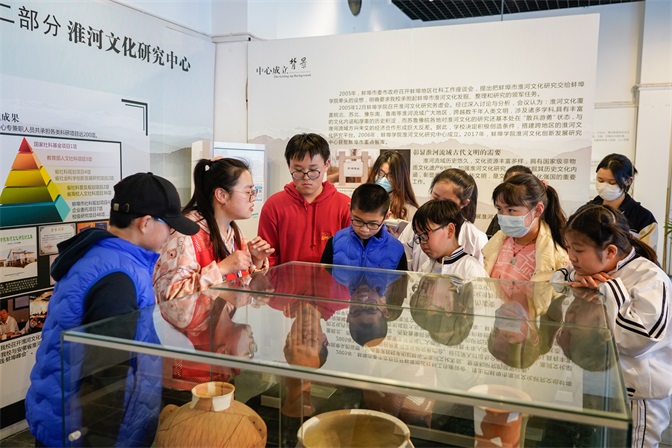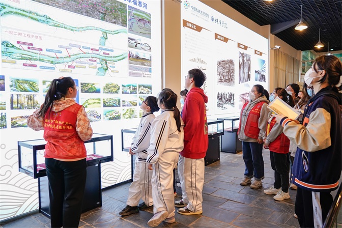 下午,来自蚌埠市第二实验小学六年级的师生们来到这里开展研学,了解淮河历史,学习淮河文化,领会淮河精神。