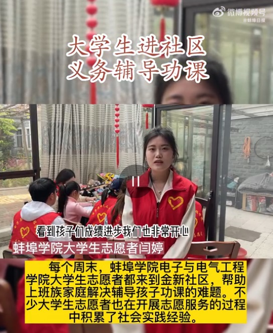 4月3日,蚌埠日报记者在金新社区以“蚌埠学院大学生志愿者周末进社区”为主题对学校大学生志愿者爱心支教活动进行了采访,并在微博上予以报道,产生了积极影响。