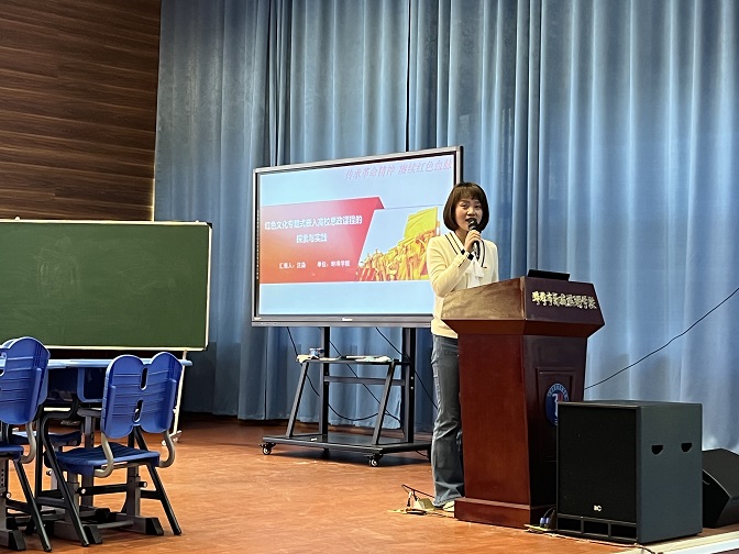 为深入学习和贯彻落实习近平总书记关于红色文化系列重要讲话精神,将红色文化融入大中小学思政课一体化建设之中,推进大中小思政课一体化共建进程,2023年4月13日,由蚌山区教体局主办的“红色思政课大中小一体化建设”观摩研讨活动在蚌埠新城滨湖学校初中部报告厅开展。蚌山区中小学思政课教师参会。蚌埠学院马克思主义学院院长邬旭东、思政课教师汪淼应邀参会。邬旭东在研讨会上作交流发言。汪淼老师进行了青春思政课课例展示。