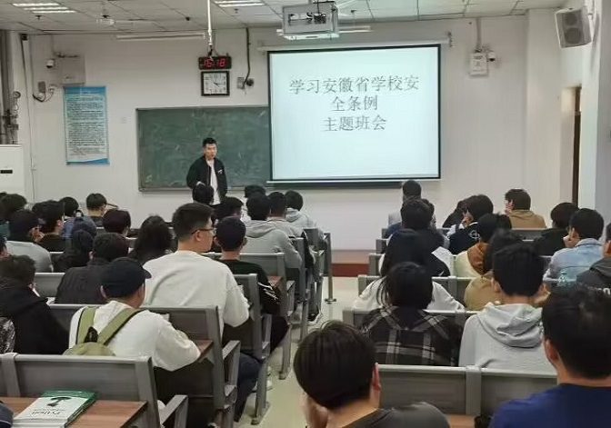 《安徽省学校安全条例》共六章,包括总则、附则以及风险防控、安全管理、事故处理、法律责任等,从2023年1月1号起施行。主题班会上,辅导员们从《条例》出台背景、实施意义和主要内容等多个方面进行解读,着重阐述了条例总则、风险防控、安全管理、事故处理等相关条款内容,引导学生对照条例,深刻检视自身在校园安全方面的职责和义务。同学们纷纷表示,要把安全牢记于心,树牢法治思维和安全底线,积极配合学院织密织牢校园安全防护网,为学校安全工作贡献青春力量。