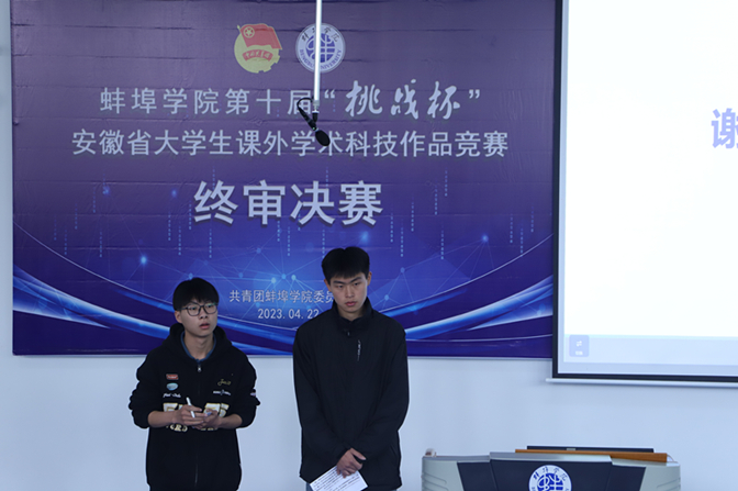 4月22日,我校在阶梯教室三举行了2023年“挑战杯”大学生课外学术科技作品竞赛终审决赛。大赛特邀多位校内外专家担任评委对自然科学类、哲学社会科学类、科技发明制作类三个类别入围作品进行现场评审。