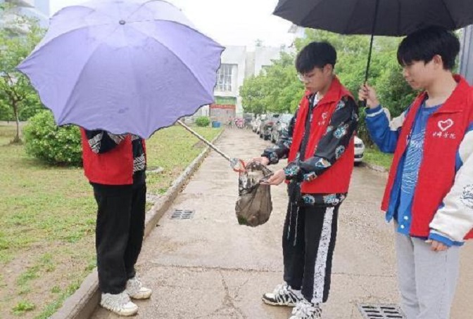 4月23日,材化学院青协志愿者们组成清洁小队,清扫校园垃圾,为创造整洁、舒适的校园环境做贡献,同学们无惧风雨,始终坚守,着力推动绿色校园建设。