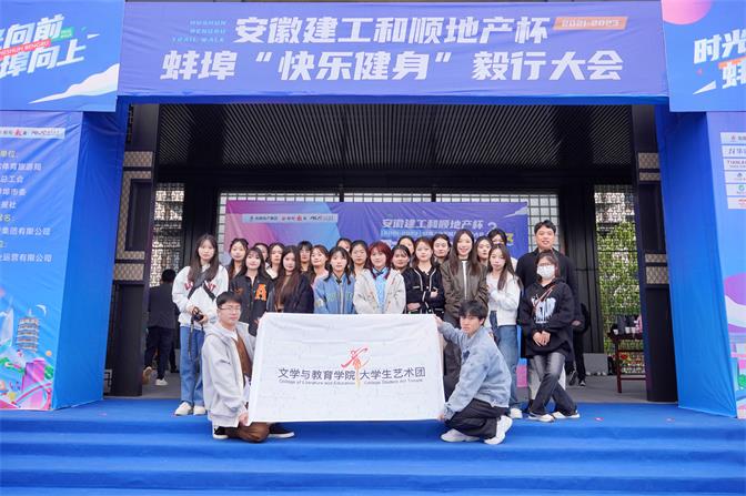 为深入贯彻习近平新时代中国特色社会主义思想和党的二十大精神,广泛开展全民健身活动,传递健康理念,丰富市民体育文化生活,感受蚌埠发展新变化,4月22日,由蚌埠市文化体育旅游局、蚌埠市总工会、共青团蚌埠市委、蚌埠日报社共同主办的“时光向前 蚌埠向上”(2021-2023)蚌埠快乐健身毅行活动在蚌埠市禹会区开幕,文学与教育学院大学生艺术团应邀参加本次活动开幕式。
