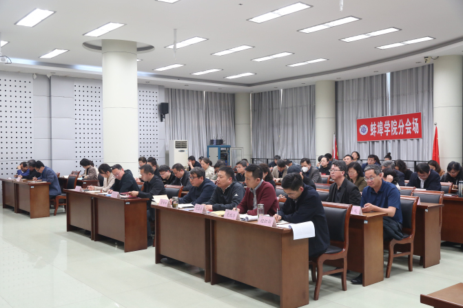 为全面系统深入学习习近平新时代中国特色社会主义思想,营造学习贯彻习近平新时代中国特色社会主义思想主题教育良好氛围,切实做到筑牢信仰之基、补足精神之钙、把稳思想之舵,4月26日下午,蚌埠学院党委中心组举行(扩大)会议,围绕“牢记嘱托再出发、踔厉奋发建新功——凝心铸魂筑牢根本”主题开展专题学习研讨。党委书记陈国龙主持会议并讲话,党委副书记、院长丁明作中心发言。校党委理论学习中心组成员、全体处级干部参加会议。