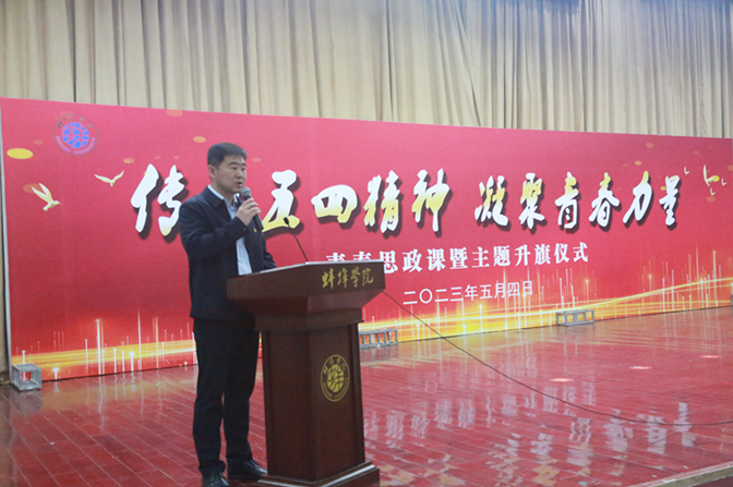 5月4日上午,蚌埠学院举行了“传承五四精神,凝聚青春力量”青春思政课暨主题升旗仪式活动。这场别开生面的青春思政课由党委书记陈国龙主讲。学校党委副书记韦文联,党委委员、纪委书记杨安成,宣传部、党政办、教务处、学工部、马克思主义学院主要负责人及各二级学院党委书记、副书记以及500余名青年师生代表参加了活动。活动由校团委书记哈焱主持。