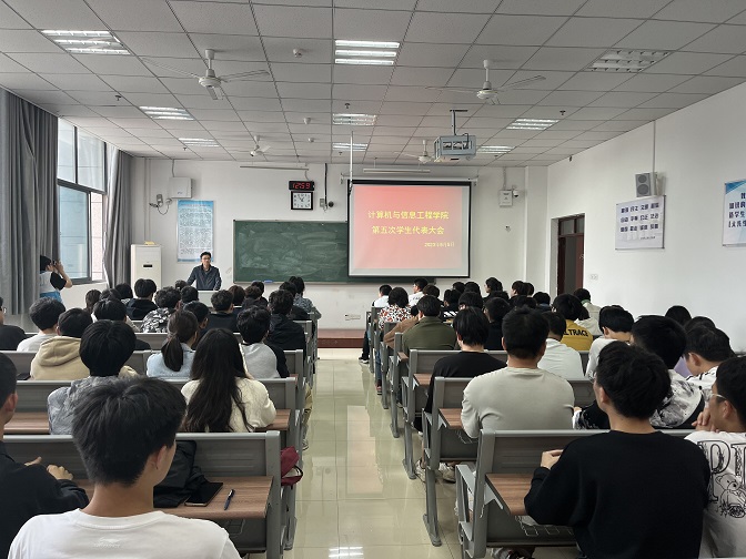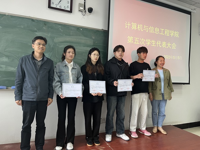 2023年5月5日中午,计算机与信息工程学院第五次学生代表大会在G201召开。计算机与信息工程学院党委书记李如林、党委副书记李丽、团总支书记常静静、辅导员谢齐和65名学生代表参加会议,22级学生代表赵明霞主持会议。