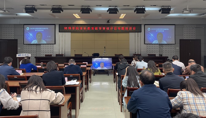 5月10日,教育部教育质量评估中心组织开展2023年本科教育教学审核评估线上专题培训。为深入学习贯彻党的二十大精神和《深化新时代教育评价改革总体方案》《关于深化新时代教育督导体制机制改革的意见》精神,认真领会《普通高等学校本科教育教学审核评估实施方案(2021-2025年)》精髓要义,切实推进学校新一轮本科教育教学审核评估评建工作有序有质实施,我校于行政楼二楼视频会议室设置培训分会场,各部门负责人及二级学院党政领导、教研室主任、骨干教师、科级干部等相关人员参加培训。