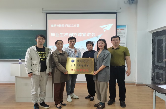 为推进2023届毕业生更高质量、更加充分就业,5月10日下午,音乐与舞蹈学院邀请芜湖金星艺术教育学校校长章娇静开展宣讲会,音乐与舞蹈学院院长徐洪琴、党委副书记吕部、副书记王媛、辅导员赵婧婧以及2023届全体毕业生参加宣讲会,会上举行蚌埠学院音乐与舞蹈学院就业基地揭牌仪式。