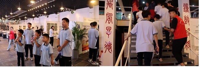 特教学校师生在学生党支部、团总支组织的14名学生党员志愿者们的陪同下走进蚌埠学院淮河文化研究中心,孩子们随着中心老师的讲解看着展区中诸多复刻的双墩遗址出土的陶器、石器和双墩刻划符号,仿佛看到了7300年前淮河两岸先民的生活画卷,深切地感受到中华文化的悠久与辉煌。