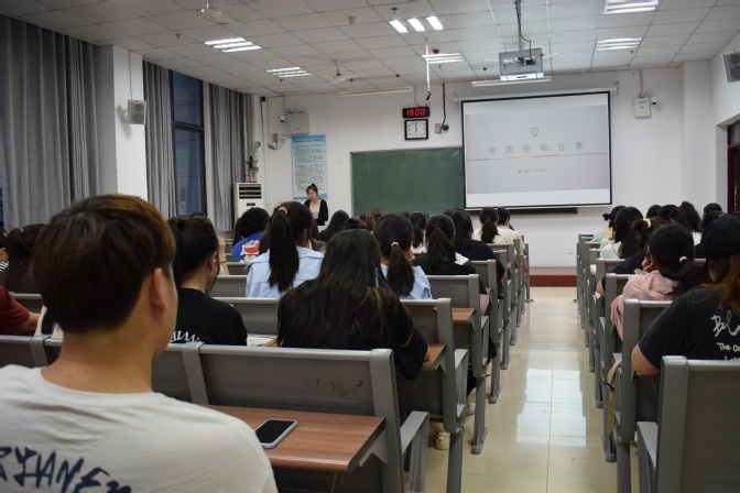 为增强外国语学院学生专四备考意识,掌握学习方法,提高复习效率,建设优良学风,5月18日晚七点,外国语学院举办了专四经验分享会。会议由学习实践部部长唐春绘主持,20英语邵雅琪、20翻译章雅婷两位同学做专四备考经验分享。