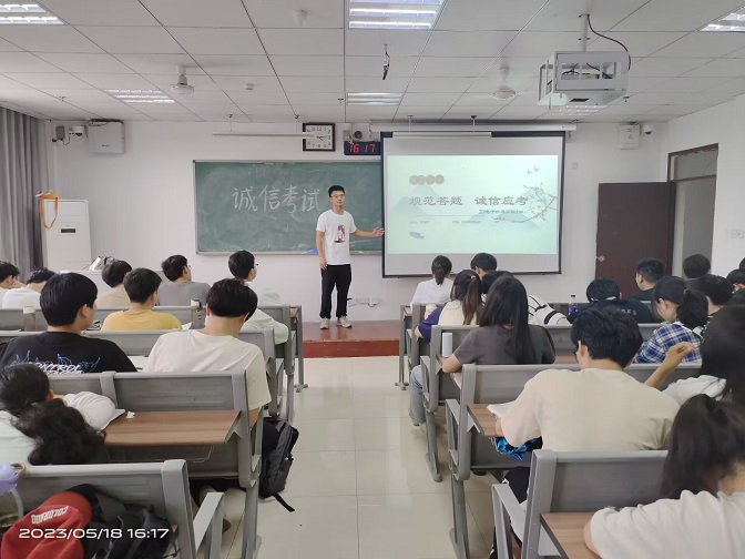 为加强学风建设,抵制作弊等不良风气,营造好学、乐学、笃学的学习氛围,维护考试的公正和严肃性,2023年5月15日-21日,电子与电气工程学院面向全院学生开展了以“全力以赴,诚信迎考”为主题的诚信教育班会。