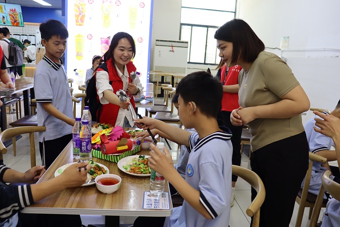 中午时分,师生们来到三食堂就餐,明亮的餐厅、丰富的菜品、热情的款待……孩子们第一次体验到了大学餐厅文化,一张张笑脸难掩喜悦之情。体验活动中,孩子们还观看了摄影展,参观了理工楼、校园雕塑、运动操场等校园标志建筑及场所景观,在参观游览的同时,大学生志愿者们还介绍学校的校景校史,在孩子们的心中播下了一颗对大学生活憧憬的种子,激发了孩子们的学习热情。