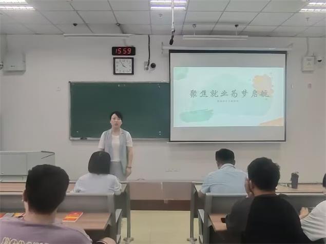 班会上,辅导员许灵结合班级前期摸排的学生就业意愿,梳理了同学们比较关心的问题,并从适应新形势、打好主动仗、树立正确就业观、端正就业心态和期望值等方面做就业动员。