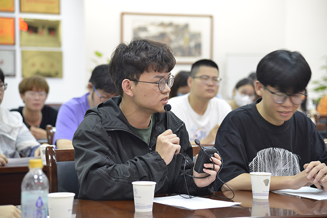 蚌埠市青联副秘书长、蚌埠市旅游协会副秘书长、创新奇智(蚌埠)科技有限公司总经理王鹏博介绍了蚌埠火出圈的背后普通蚌埠青年为之努力的青春故事,诙谐幽默的语言拉近了与青年学子的距离,也把座谈会推向高潮。