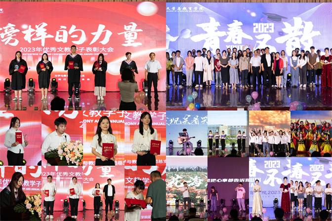 整场晚会节目丰富多彩且创意新颖,呈现了青春与活力的完美交织,激情与柔情的巧妙融合。表彰大会和毕业歌会交相辉映、互取所长,不仅增强了文教学子们对学院的认同感和归属感,也充分体现了学院学子奋发进取、憧憬未来的良好精神风貌,为学院的发展注入了新的动力。(撰稿:崔静;编辑:张法帅;审核:吴长法、黄灿)
