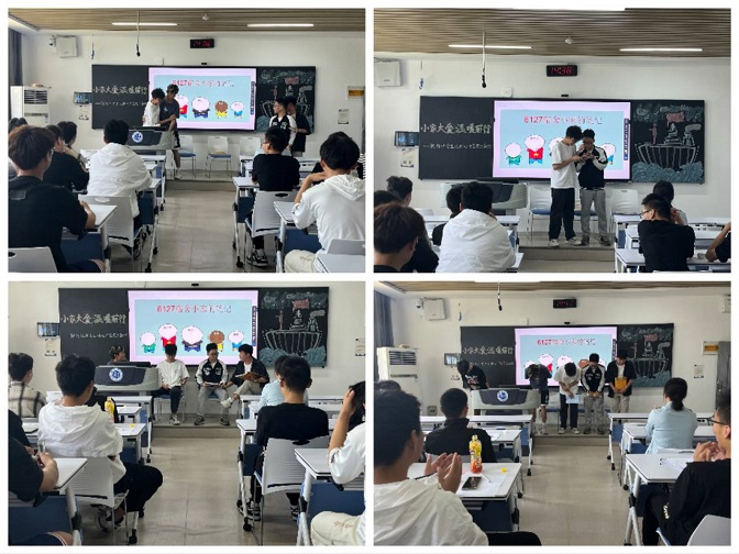 为呈现一场别具风格的主题班会,辅导员老师和班级同学做了细致、充分的准备,开展问卷调查、设计黑板海报、精心制作PPT、构思小品剧本、组织表演编排、策划互动卡片等。