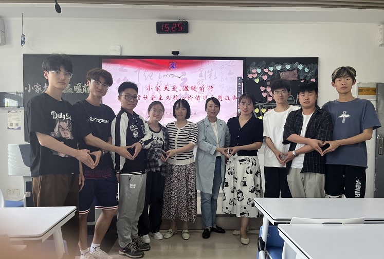 主题班会以宿舍小家为切入点,通过一组漫画“友谊的小船说翻就翻”引入正题。在“爱之微-畅叙宿舍情”板块,通过小品演绎宿舍小家的故事,让同学们懂得营造和谐友爱的宿舍关系正是当代大学生践行社会主义核心价值观的最直观体现;在“爱之广-社会我担当”板块,同学们观看视频感受到身边友善无处不在,“省吾身”活动中,同学们围绕问题对疫情中个人成长、社会热点问题谈感悟,李芹影结合时事讲述蚌埠、淄博两座城火出圈的深层次原因,阐述爱的真谛;在“爱之宏-共筑中国梦”板块,通过卡片寄语的方式,引导学生思考如何通过构建和谐的宿舍关系,践行社会主义核心价值观。班会分三个板块层层递进,引导学生建和谐小家、怀家国大爱、立报国之志。整个班会氛围温馨和谐,同学们参与热情高涨。